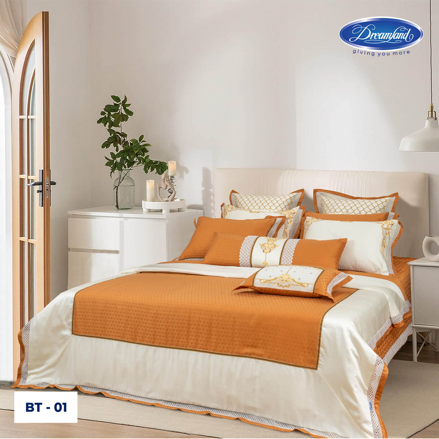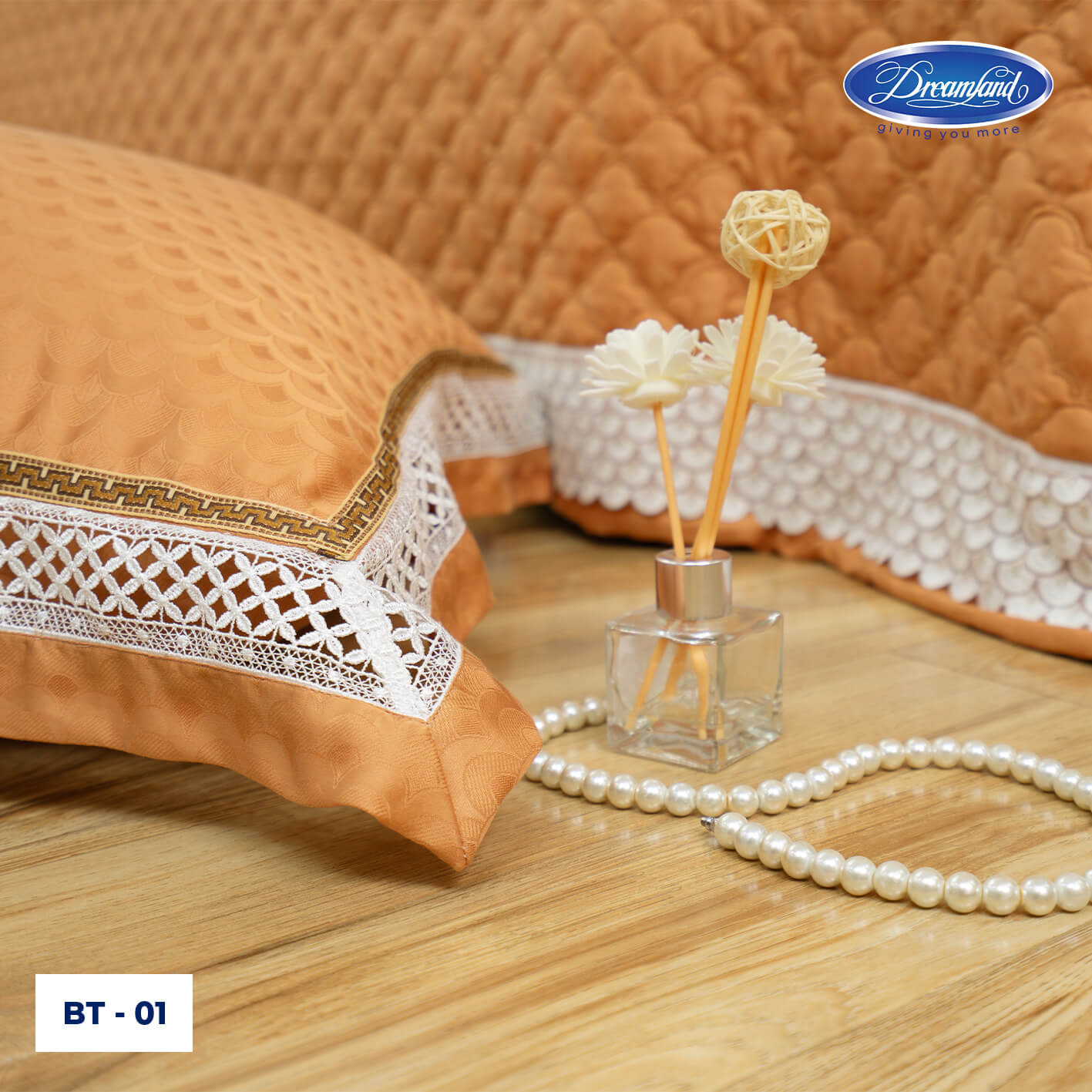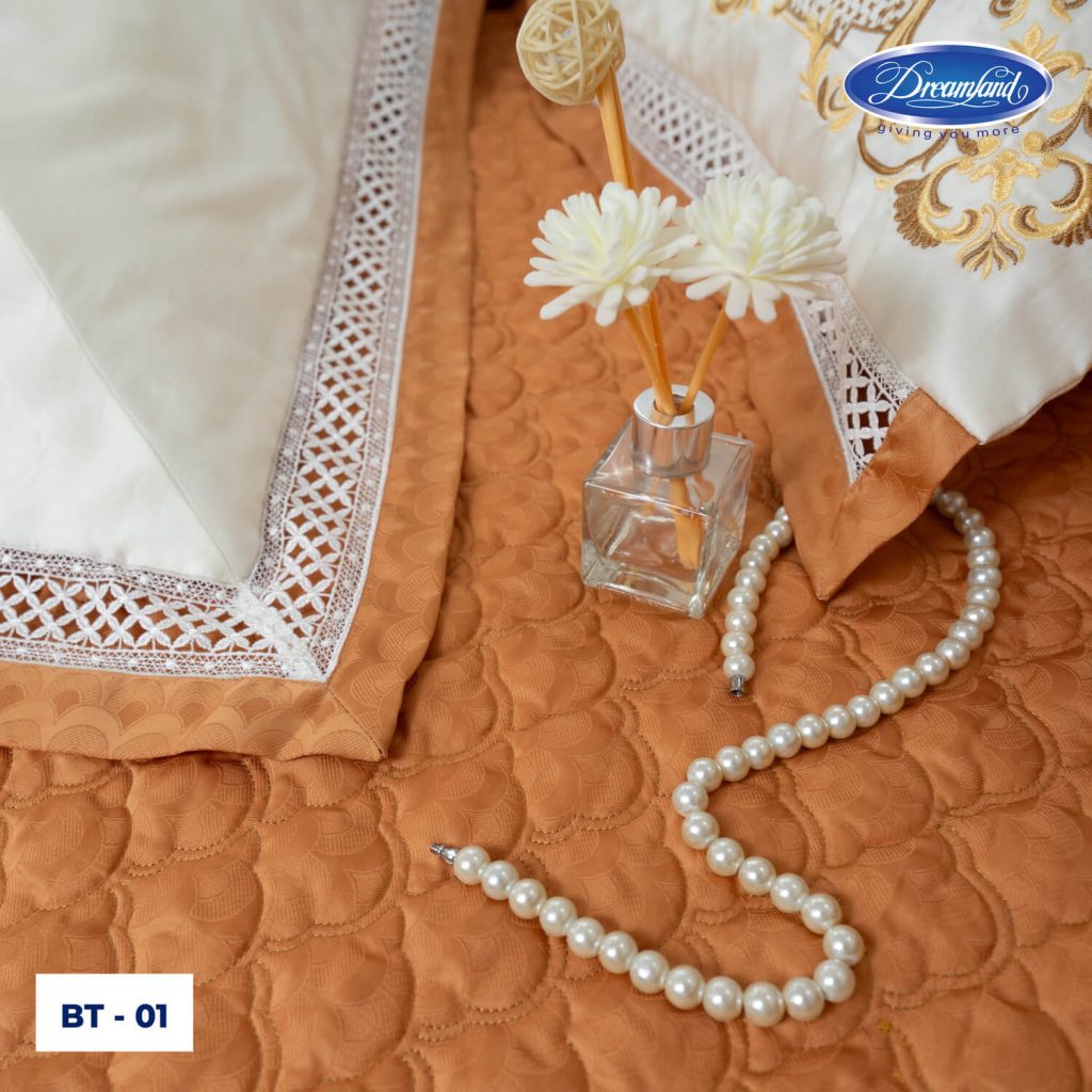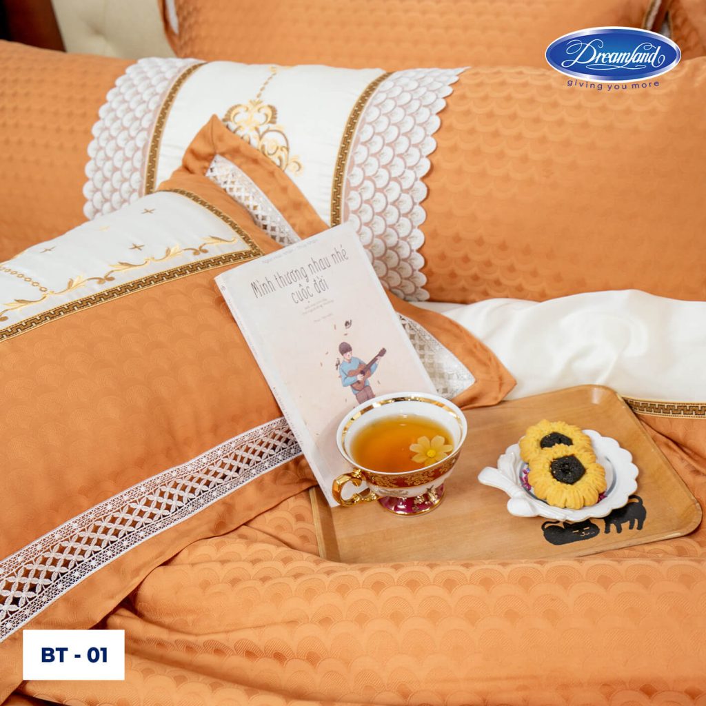 - Vải sử dụng công nghệ dệt Jacquard cùng kỹ thuật may các đường ren thêu mềm mại, kết hợp với họa tiết thêu thủ công đường chỉ chắc chắn, mang lại sự cao cấp, sang trọng.