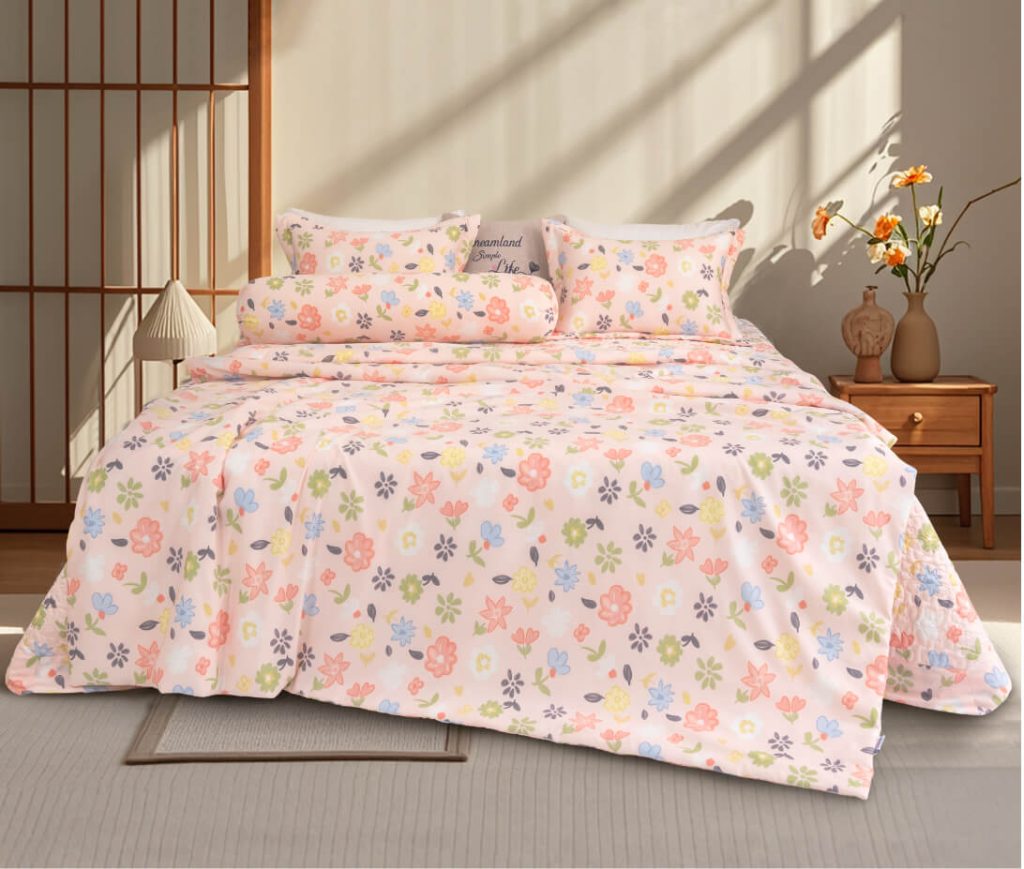 Màu hồng pastel ngọt ngào + hoa nhí tinh tế = combo hoàn hảo cho một phòng ngủ chuẩn mood. Bộ chăn ga này mang đến cho căn phòng ngủ của bạn một nguồn năng lượng mới, trẻ trung và tươi vui. Ngủ ngon – mơ đẹp – sống chill