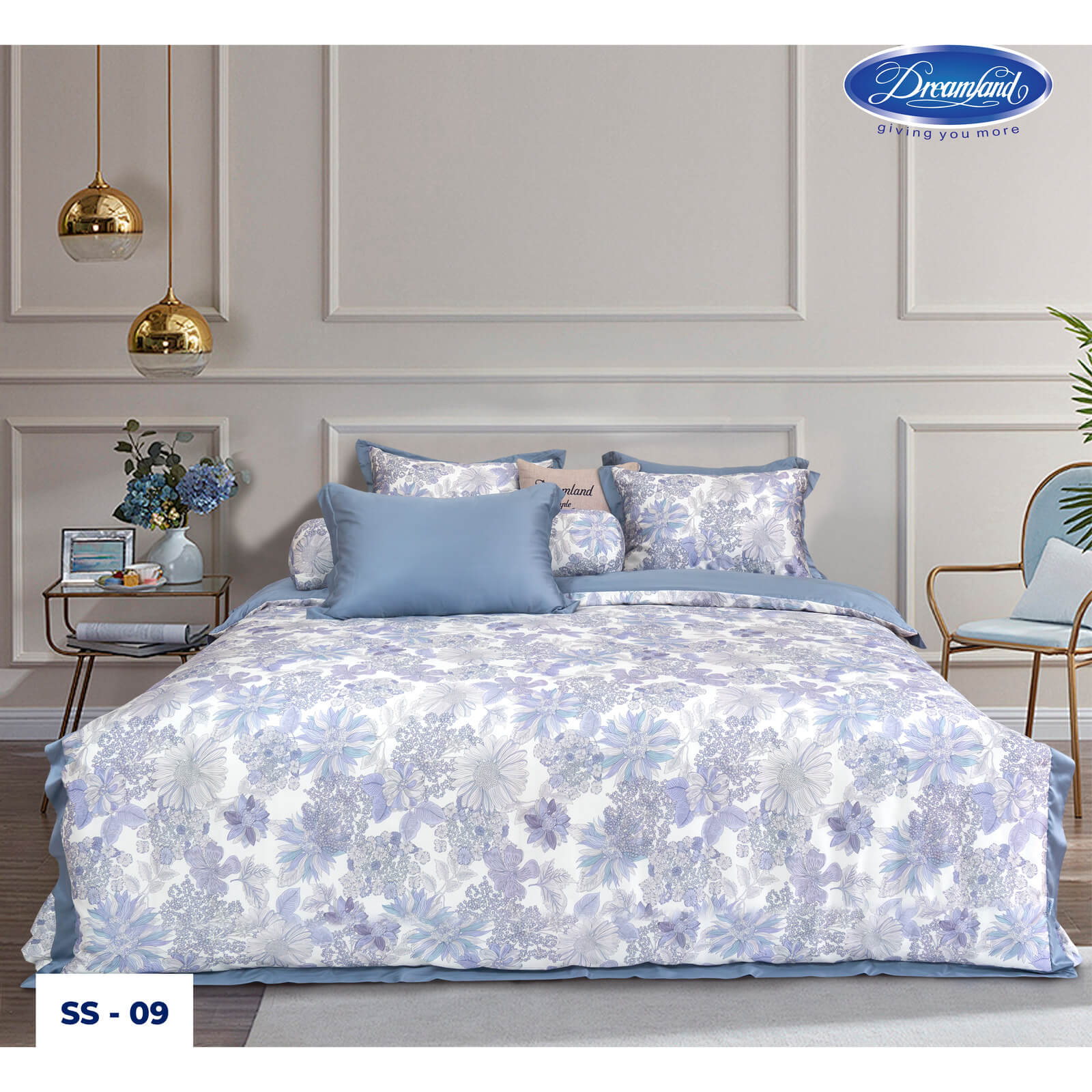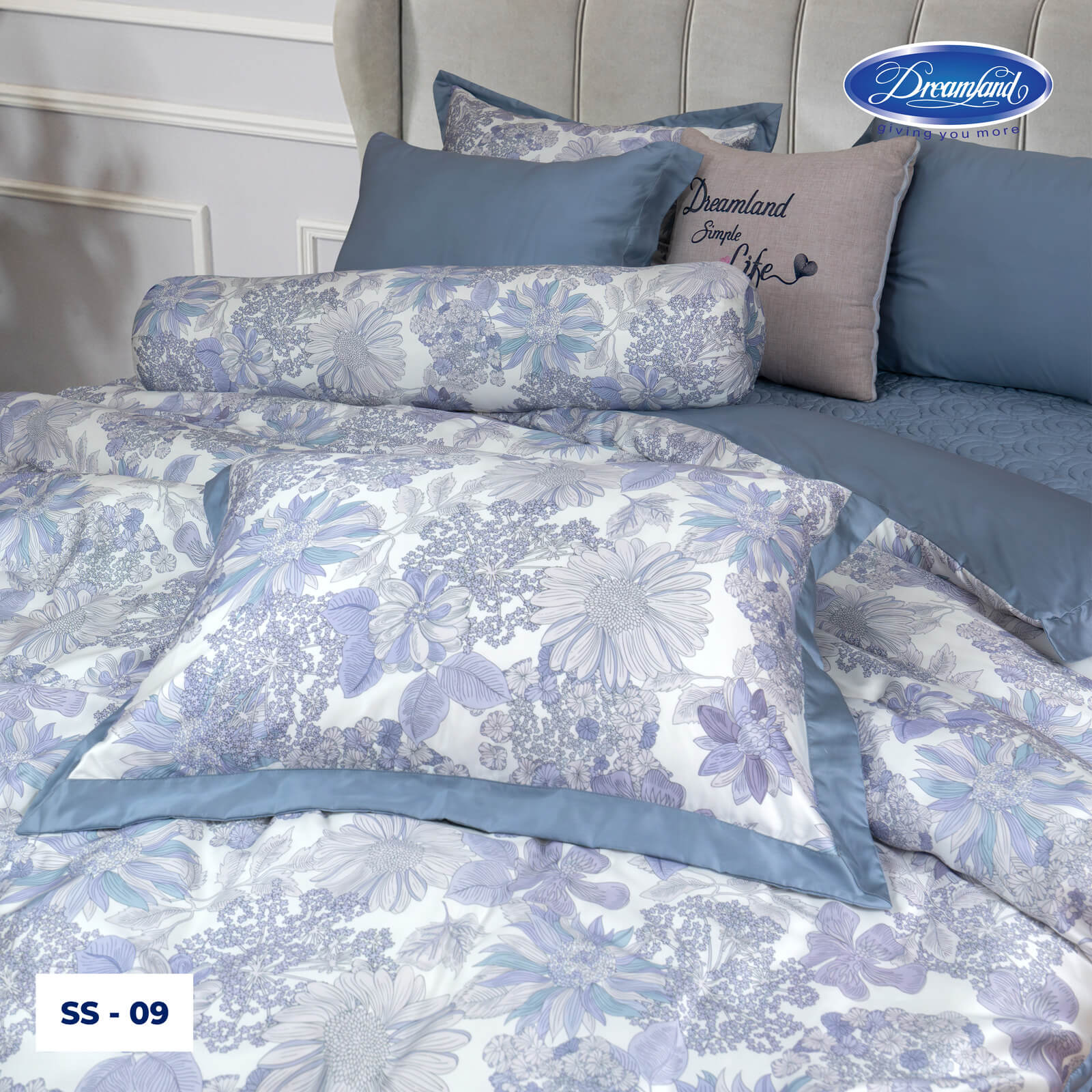 Sự kết hợp khéo léo giữa vải trơn màu xanh tro và phần hoa văn giúp tổng thể bộ sản phẩm vừa trang nhã, vừa mang nét cổ điển, dễ dàng hòa hợp với nhiều không gian nội thất. Chất liệu mềm mại, thoáng mát, từng đường may đều được chăm chút tỉ mỉ, mang đến trải nghiệm nghỉ ngơi thoải mái, êm ái và đậm chất tinh tế.